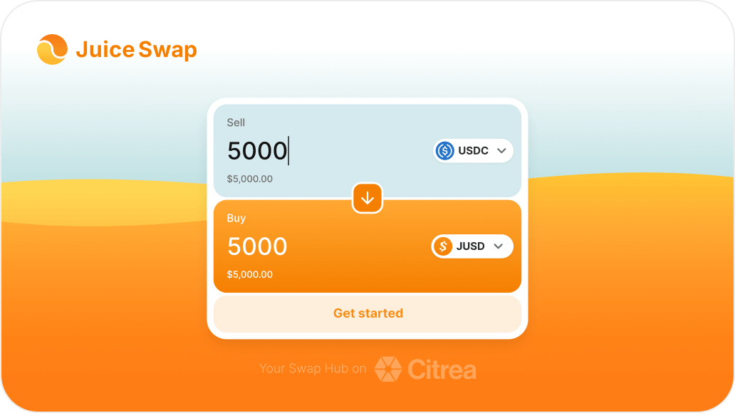 To start saving, get JUSD on the Citrea Layer-2. You can buy it directly from your bank or swap it on-chain — for example on JuiceSwap — from another token.